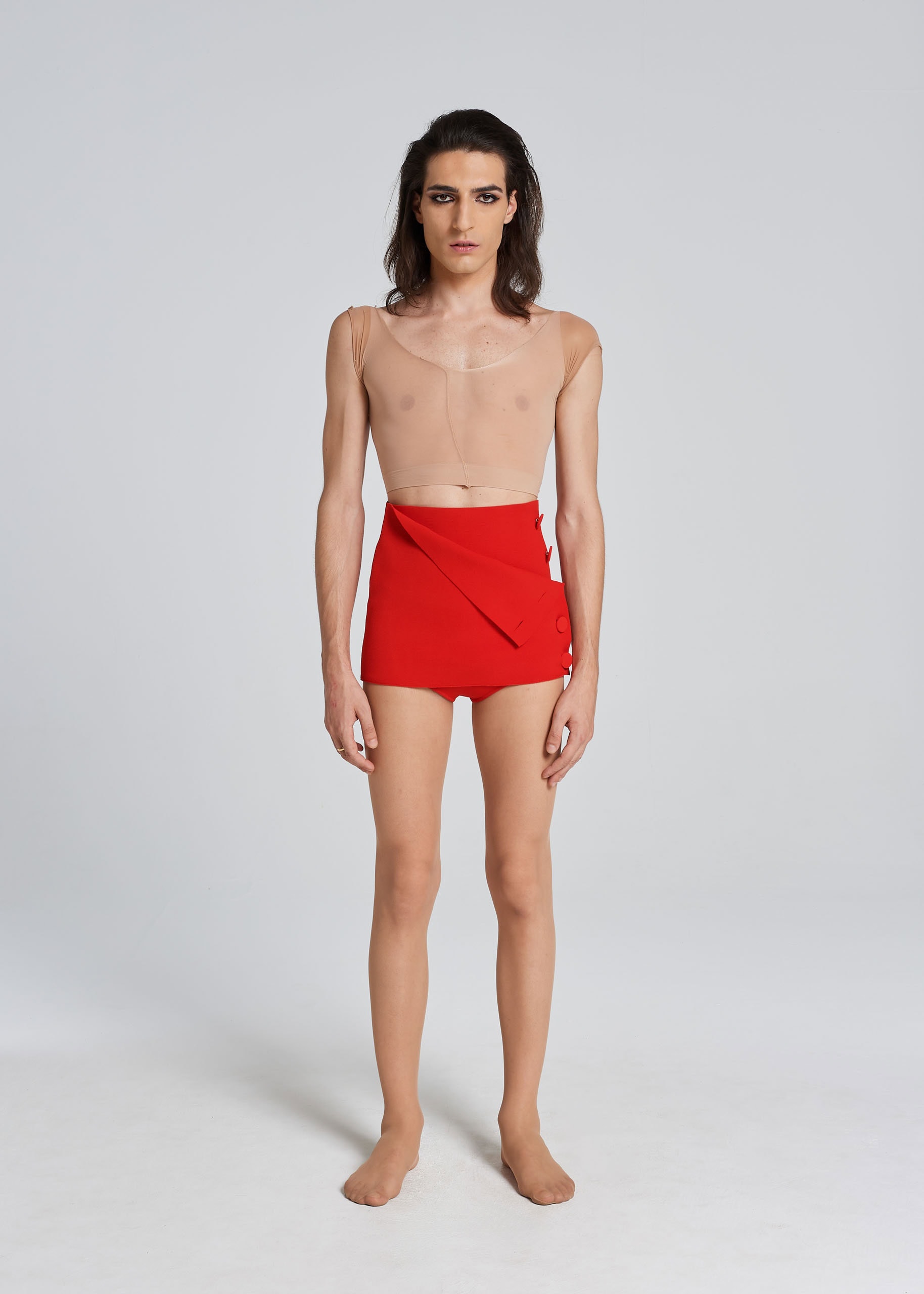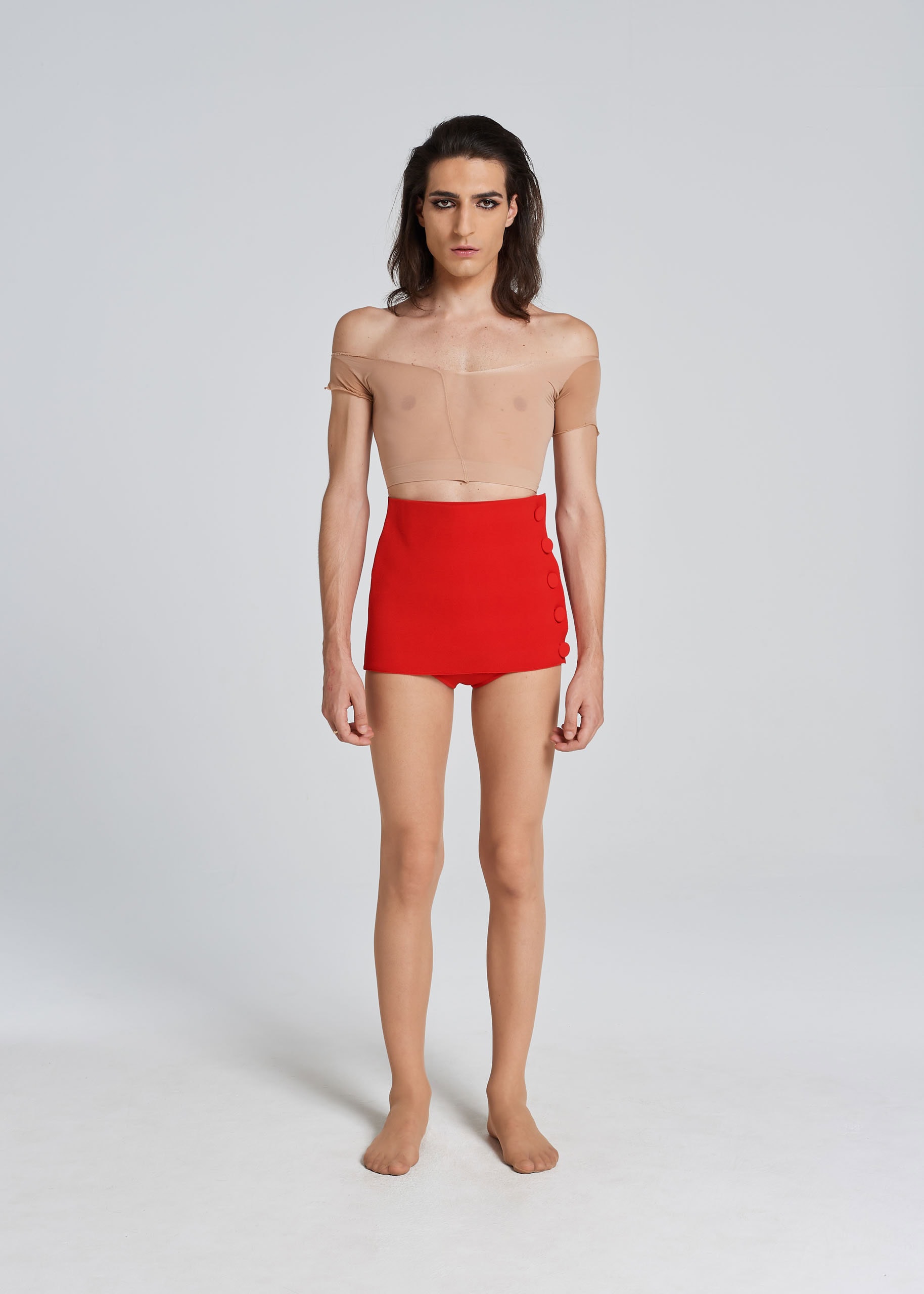 Nicola, fashion designer and roommate of Monica, Don Giovanni of the ROT family: he is 1.78m tall and wears a size S/M without heels.