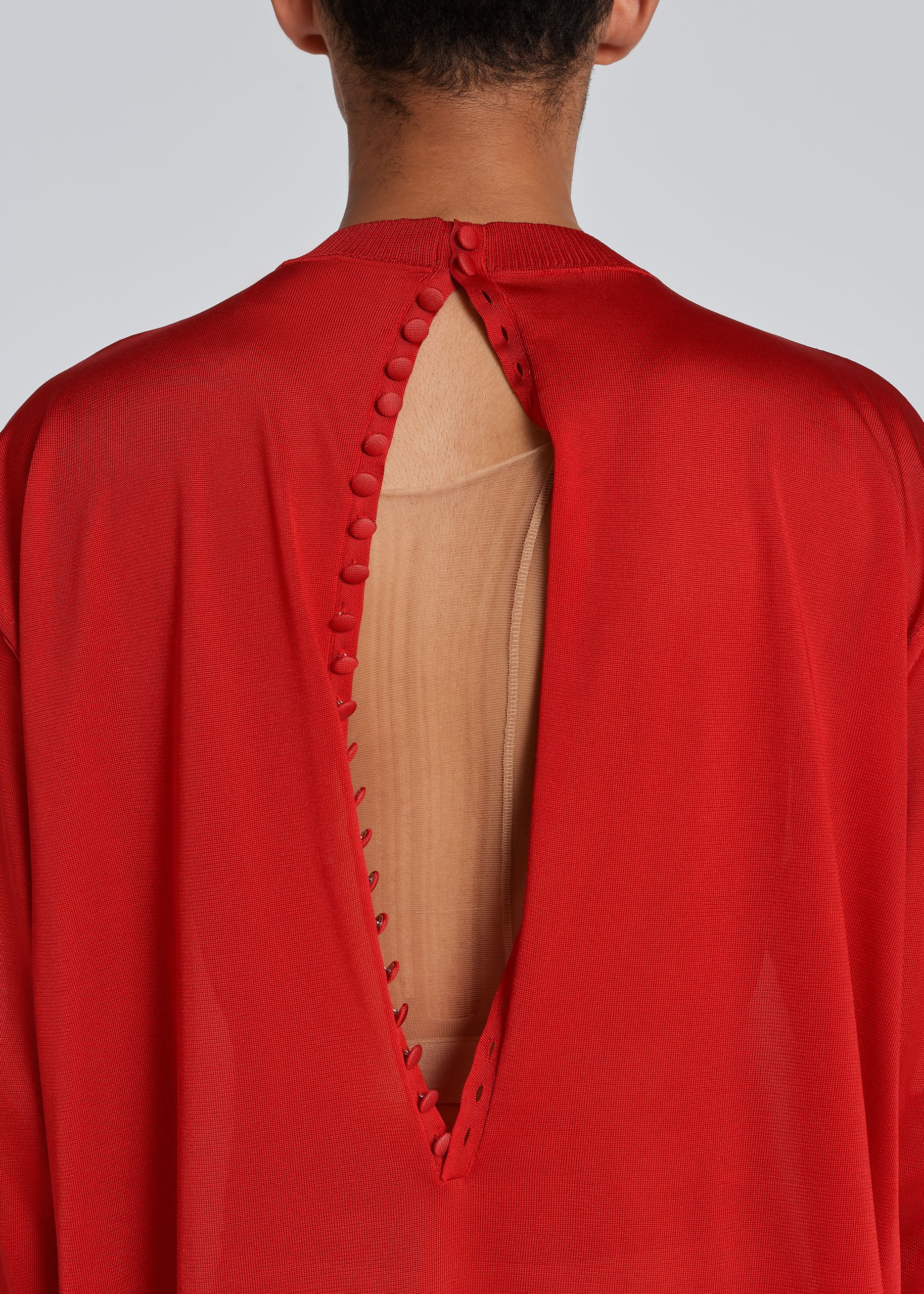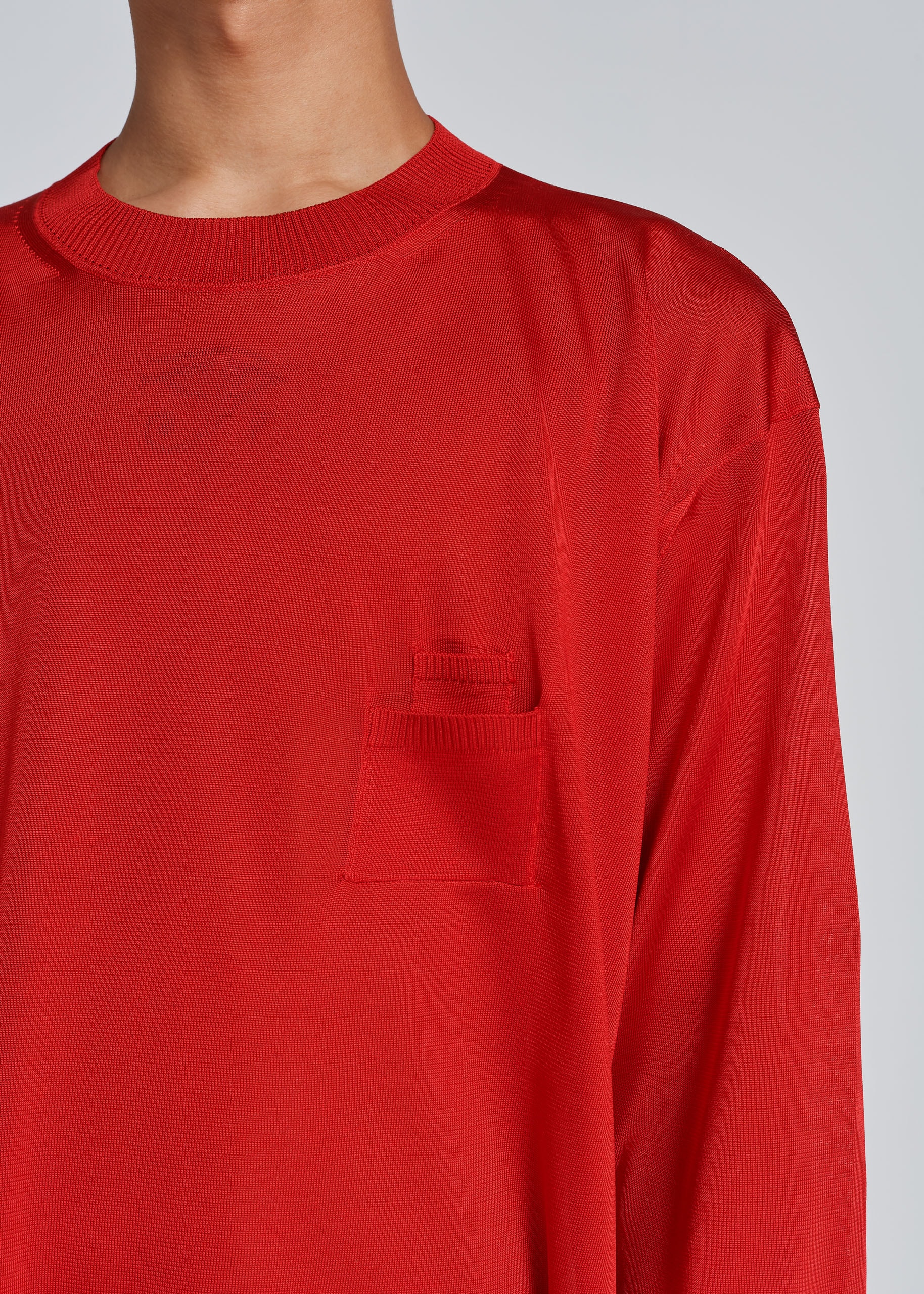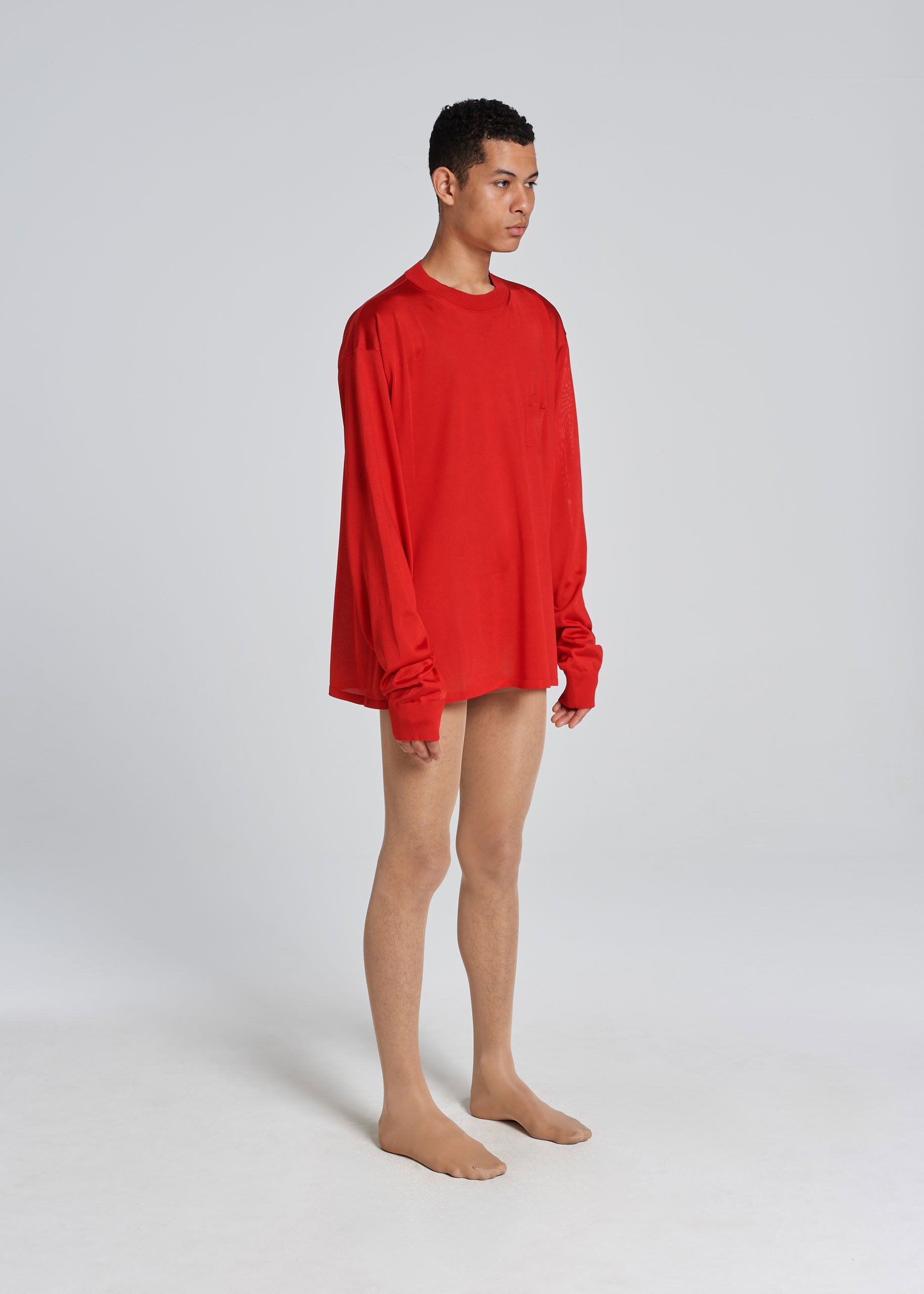 La T-shirt di ROT è in filo di pura seta, e ha una scollatura vertiginosa che puoi giocarti sul davanti e sul retro. Il modo migliore di allacciarla? A caso. I bottoni sono ricoperti dello stesso filo. Ha due microtasche in seta progettate per non perdere le microdosi. Puoi indossarla come una casta maglia a maniche lunghe, e trasformarla in un capo tremendamente sexy. Vedi tu come te la senti.